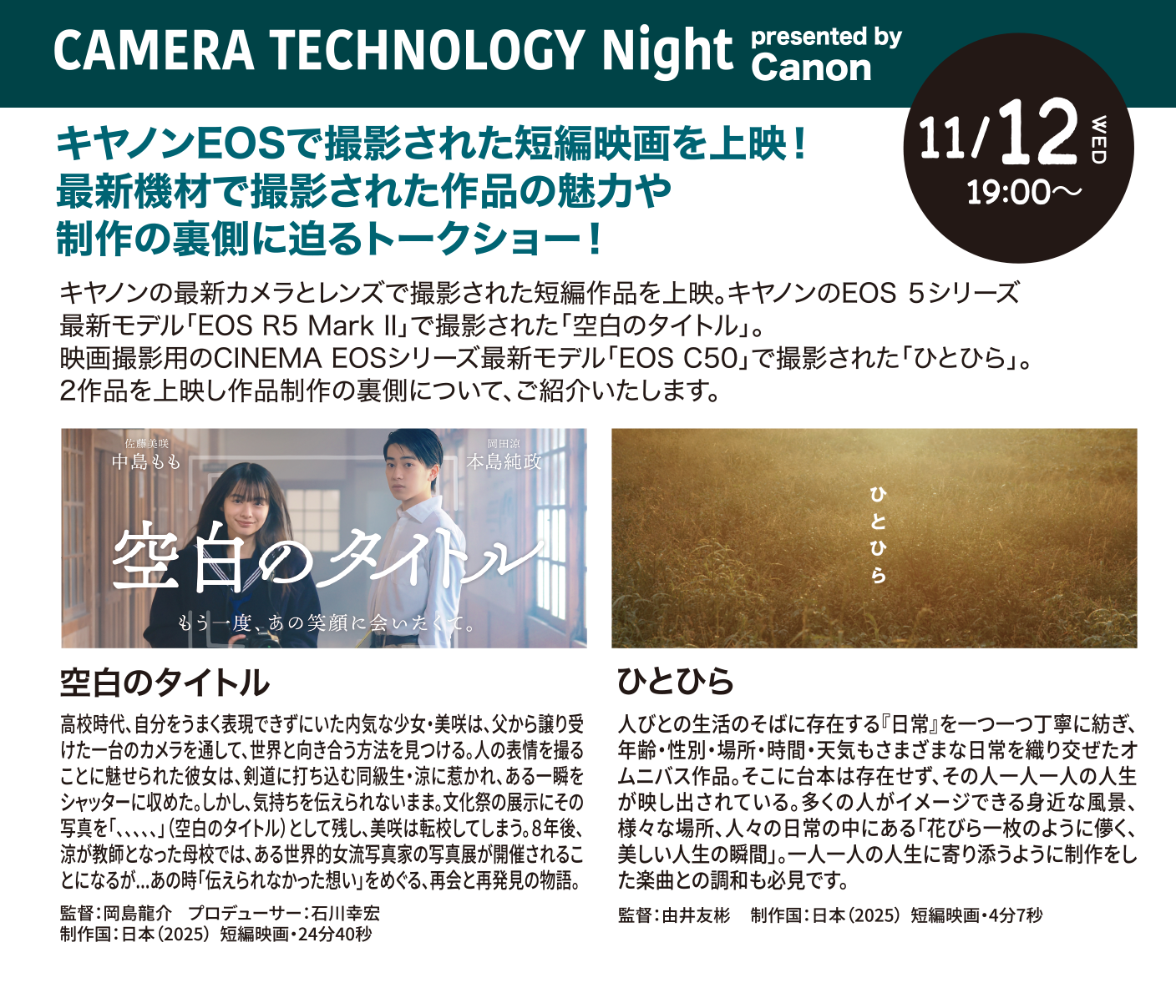 作品に込めた真のテーマ、撮影時の忘れられないエピソードや困難を乗り越えた瞬間など生の声で語ります。