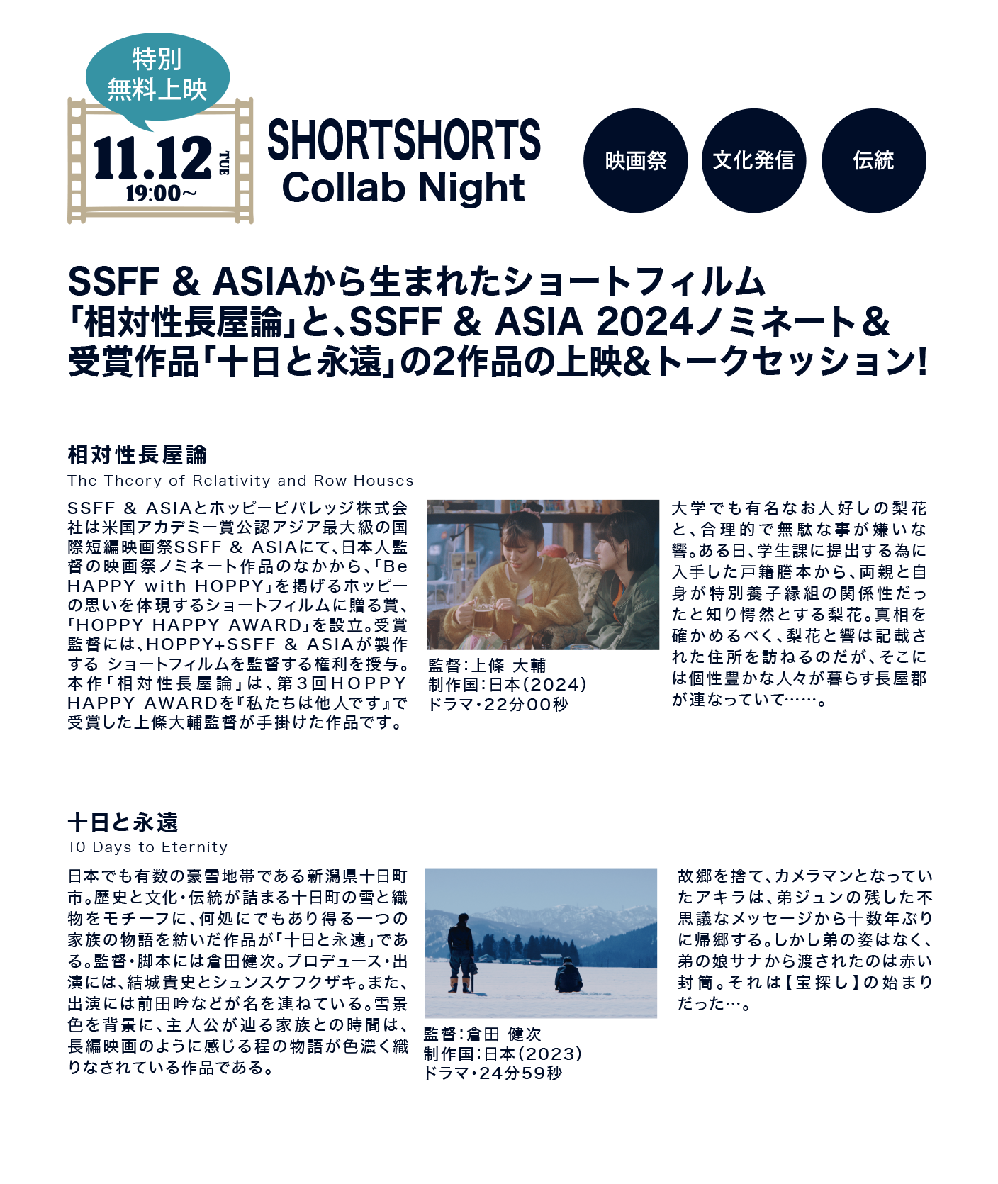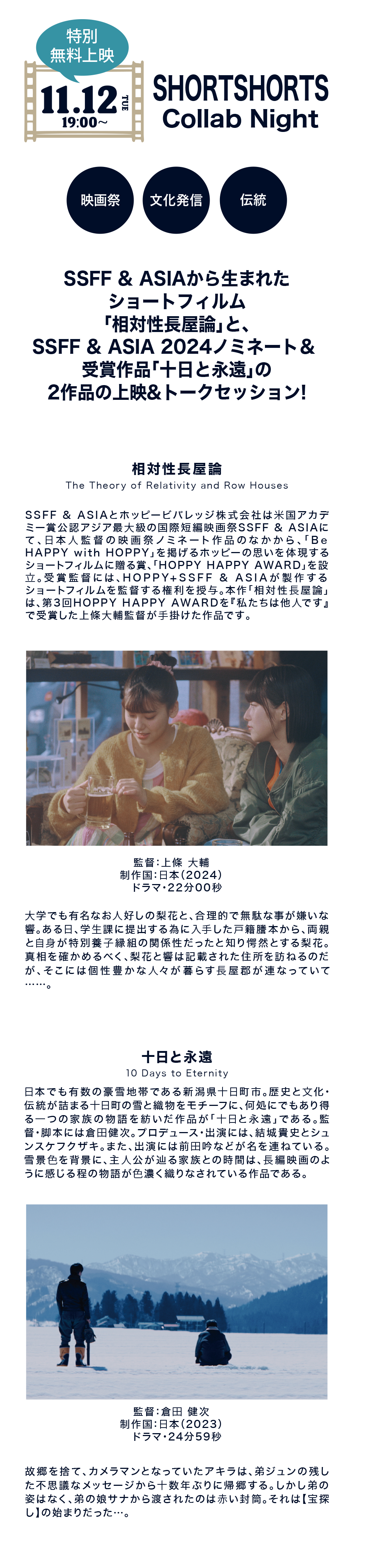 “つなぐ・つながる品川”をテーマにした厳選ショートフィルムや、